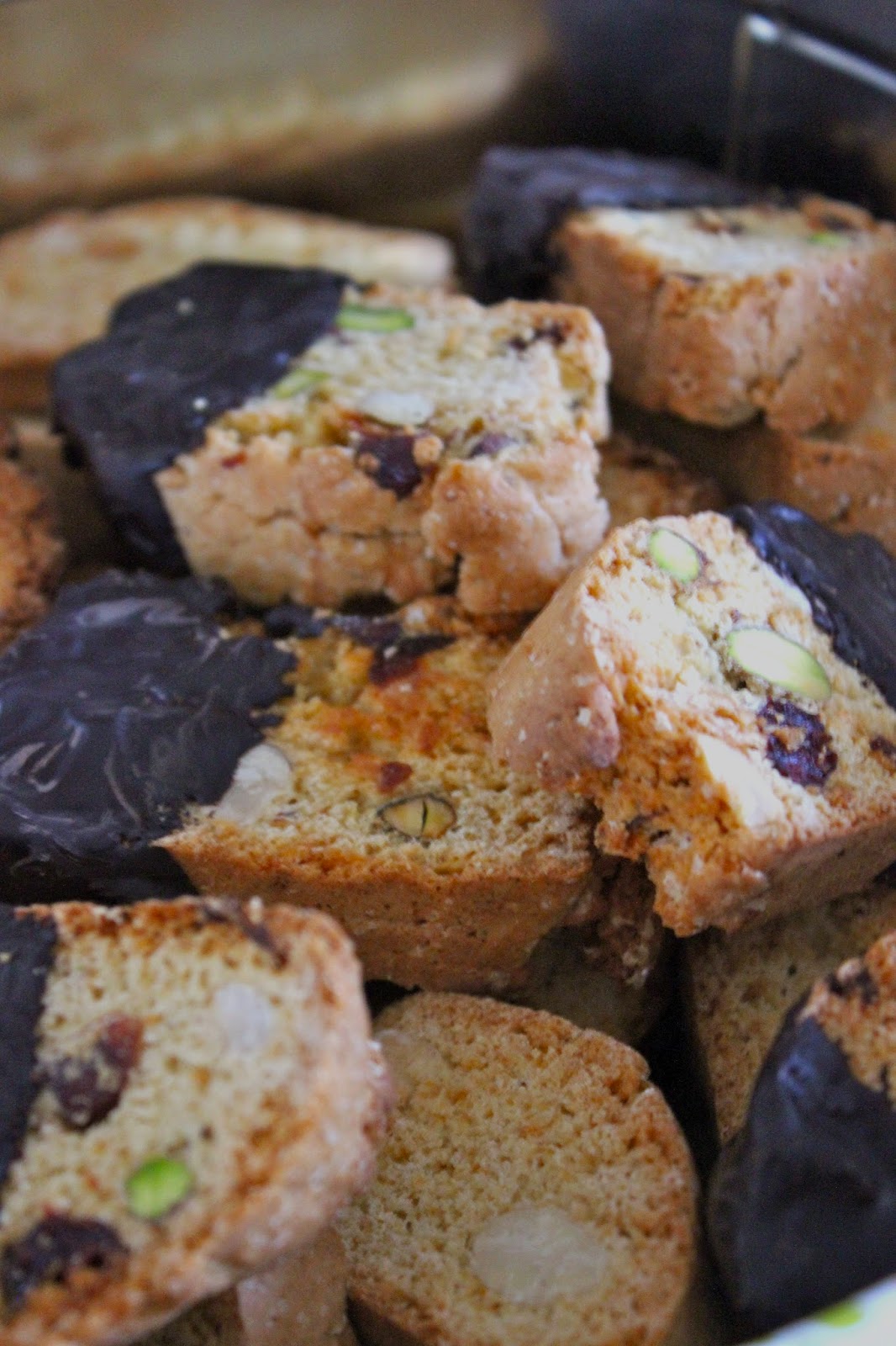 Verser la pâte sur une plaque à pâtisserie recouverte de papier sulfurisé afin de former un boudin d'environ 35cm de long sur 10cm de large (on peut aussi faire de plus petits biscottis en divisant la pâte en deux et en formant deux boudins plus fins). Faire cuire 16-18 minutes.